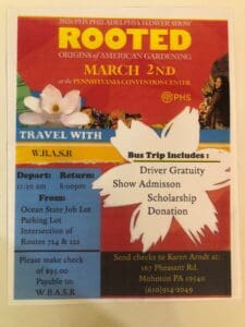 Events for January 2026 « All Events RECREO: Western Berks Chapter: Philadelphia Flower Show March 2 @ 11:30 AM - 8:00 PM EST $95 Event Navigation « RECREO: Philadelphia Chapter: Philadelphia Flower Show Greene Chapter: Reading Competition Greene County Library System » Add to calendar Google Calendar iCalendar Outlook 365 Outlook Live Details Date: March 2 Time: 11:30 AM - 8:00 PM EST Cost: $95 Event Categories: Berks County, Recreation (RECREO) Location Philadelphia Convention Center Organizer Karen Arndt Phone (610) 914-2049 Email karndt@ptd.net